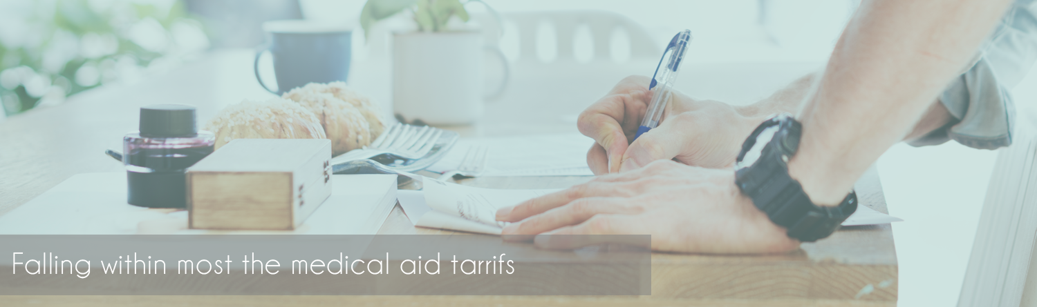 Rates charged at the practice fall within most of the current medical aid tariffs and clients are expected to settle accounts in cash or via EFT (Electronic Funds Transfer).